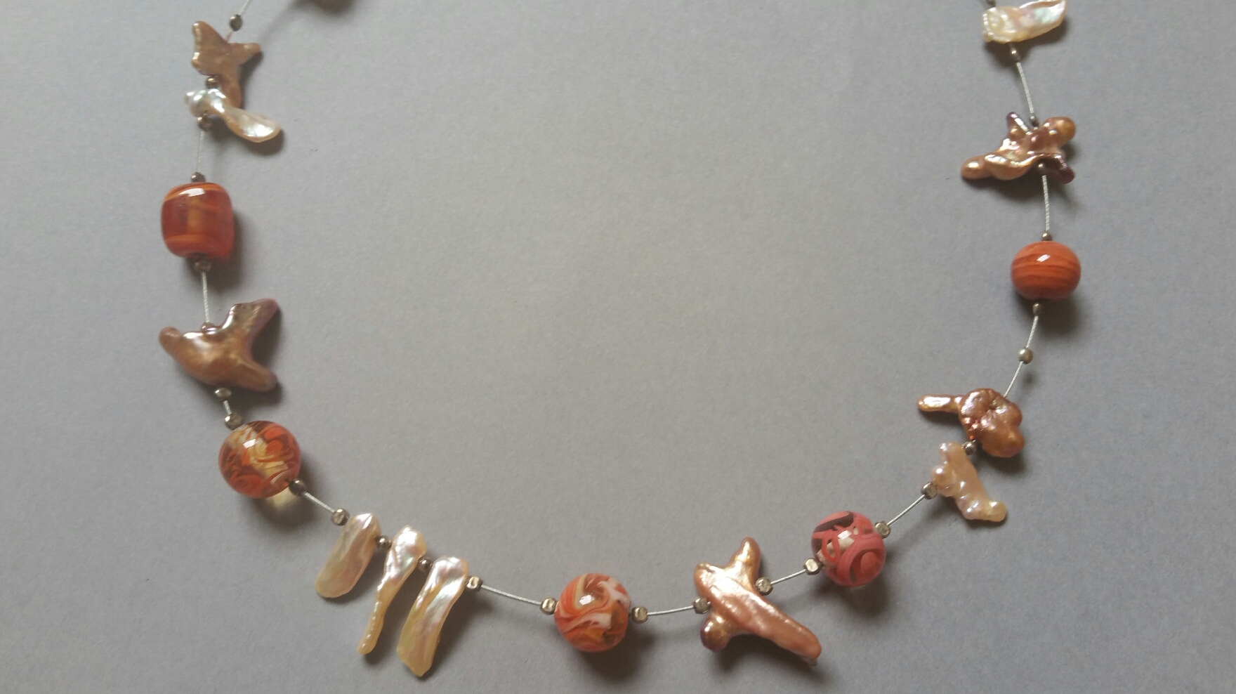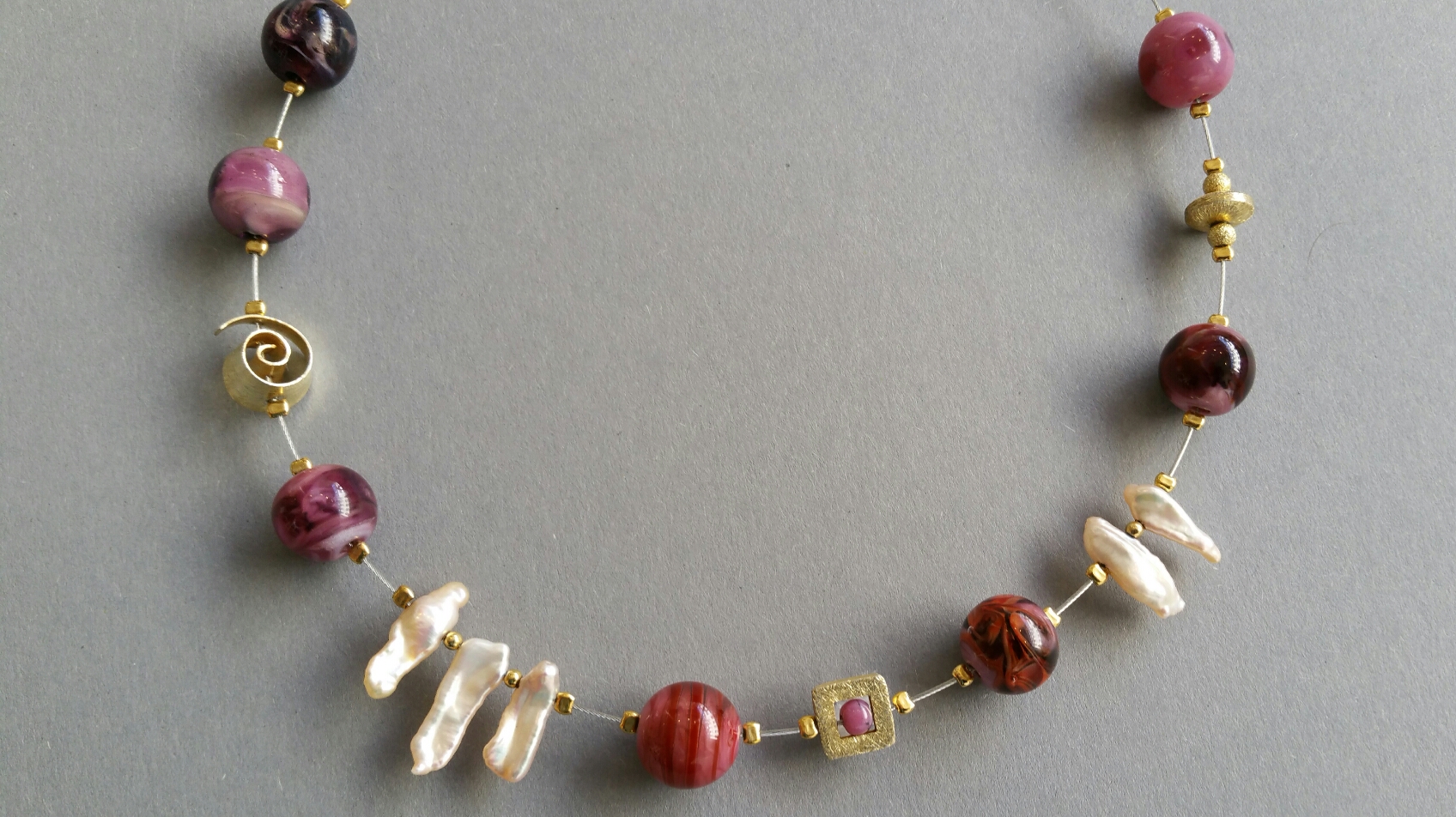 Glasperlen, Biwa Perlen & Silber/vergoldet